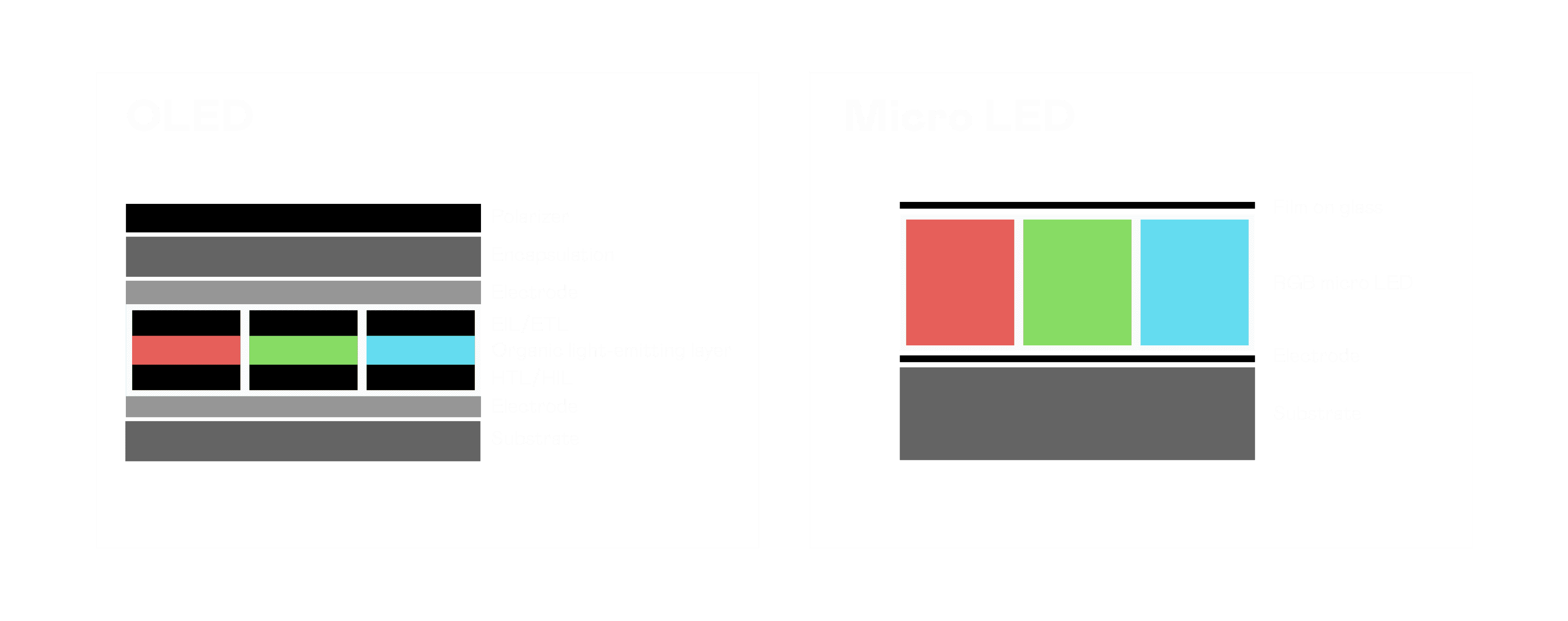 以 LED 做为显示画素,,,可让 LED 的发光效率发挥到极致,,,从而让显示器具备优异的亮度表现,,,,不论是在户外或室内,,,,均具备出众的显示效果。。。同时,,与使用有机材料的 OLED 相比,,LED 具备更稳定、、、寿命更长的特性,,,,不仅不会有画面烙印问题,,而且更不容易出现故障、、、坏点。。