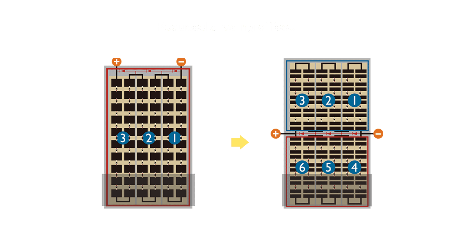优化的太阳能电池结构设计,,不仅提高电流收集效率,,,,降低电池隐裂,,,,使太阳能模组长期维持稳定的输出效能,,,,提高营运效益。。。。