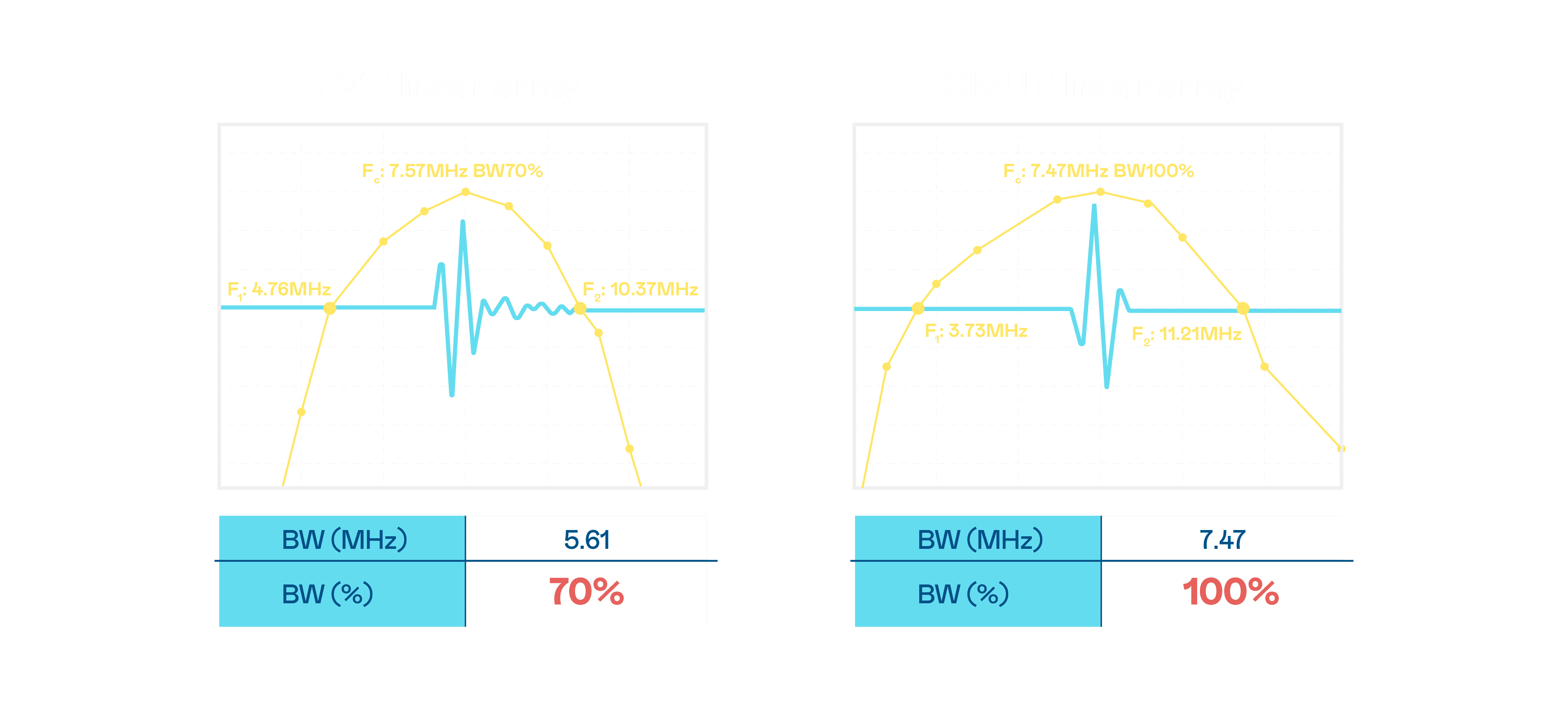 超音波影像的解析度高低,,首先取决于探头能发出的讯号频宽。。赏金国际 CMUT 可提供高清晰的超音波讯号,,,提供高频宽、、、高灵敏度、、影像纹理细节更高的超音波影像,,,协助医护人员缩短影像判读时间及利用精准的医疗影像进行诊断。。。。